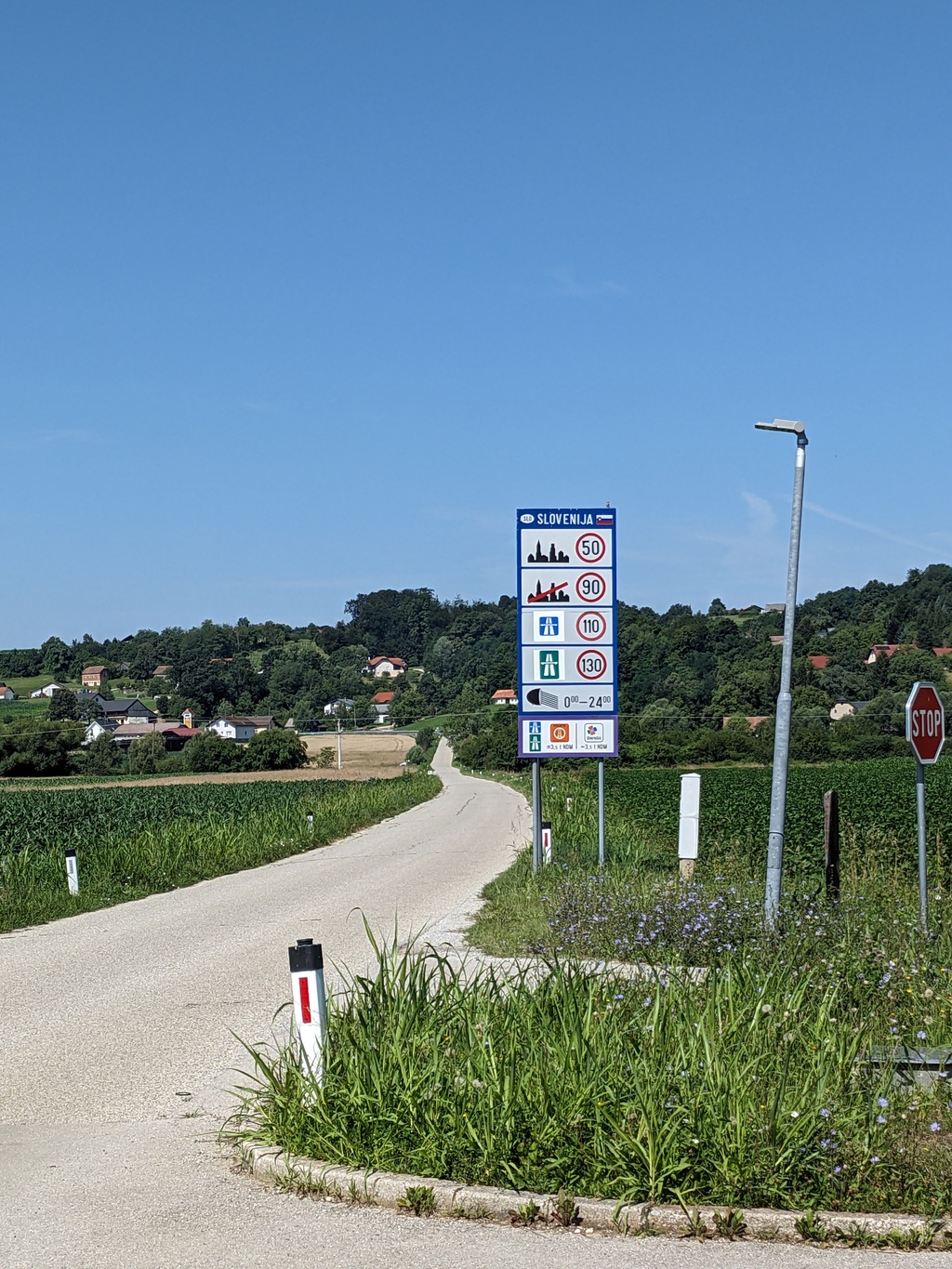 I must traverse Slovenia again, and this time I have no intention of paying the vignette, nor the Austrian vignette for that matter. I plot a route avoiding the motorway network, passing through many villages in the slovenian countryside.