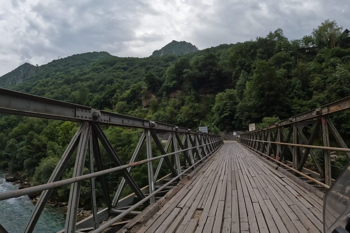 I take what looks on the map to be a major road from Sarajevo to the border with Montenegro. It is in fact a poorly maintained road, only 1½ car widths wide with pot holes large enough to damage vehicles. The actual border crossing is a wooden bridge that is about 3 metres wide. The exit border from Bosnia is on one side of the ravine and at Šćepan Polje on the other side, I enter Montenegro.