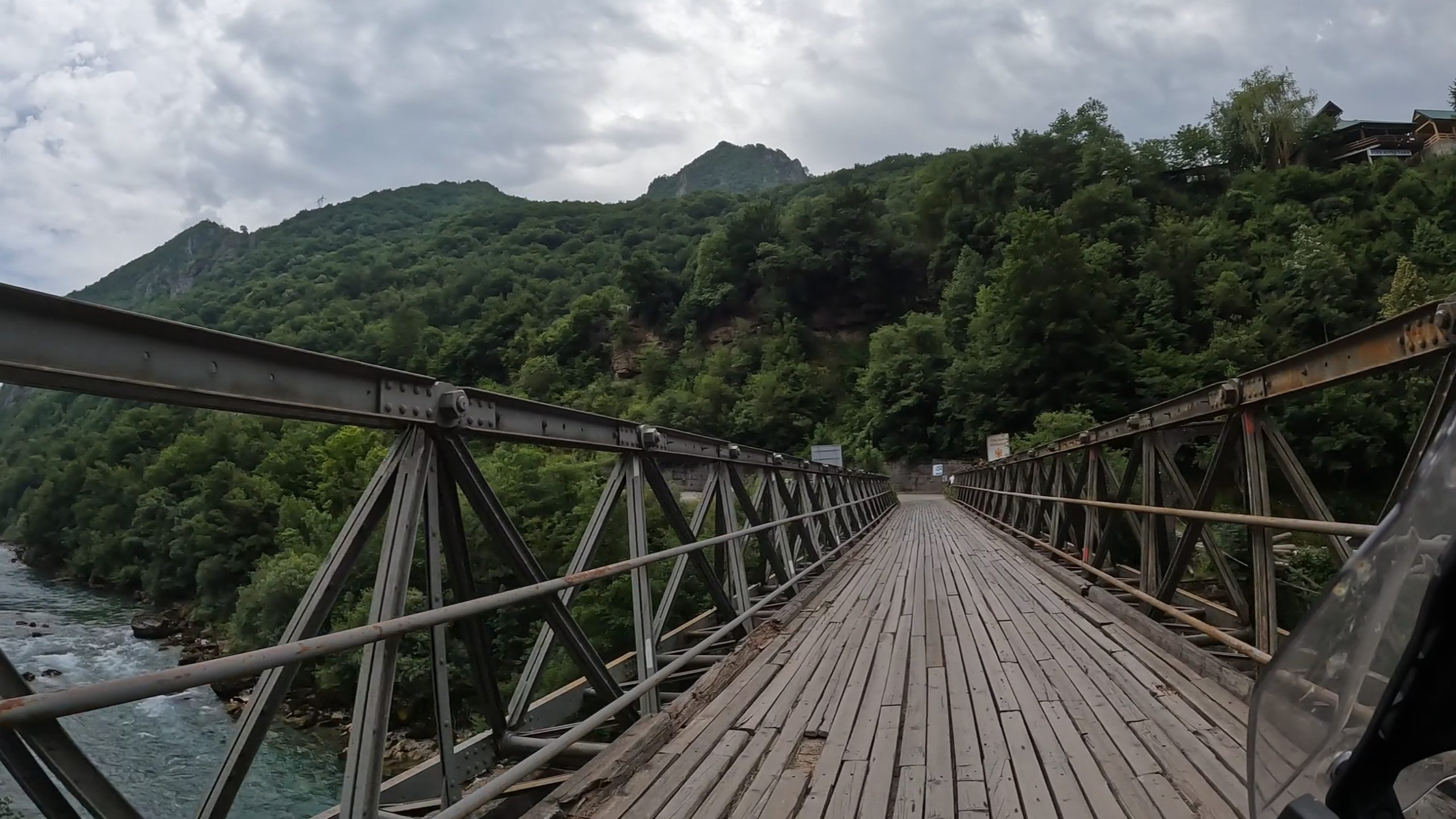 I take what looks on the map to be a major road from Sarajevo to the border with Montenegro. It is in fact a poorly maintained road, only 1½ car widths wide with pot holes large enough to damage vehicles. The actual border crossing is a wooden bridge that is about 3 metres wide. The exit border from Bosnia is on one side of the ravine and at Šćepan Polje on the other side, I enter Montenegro.